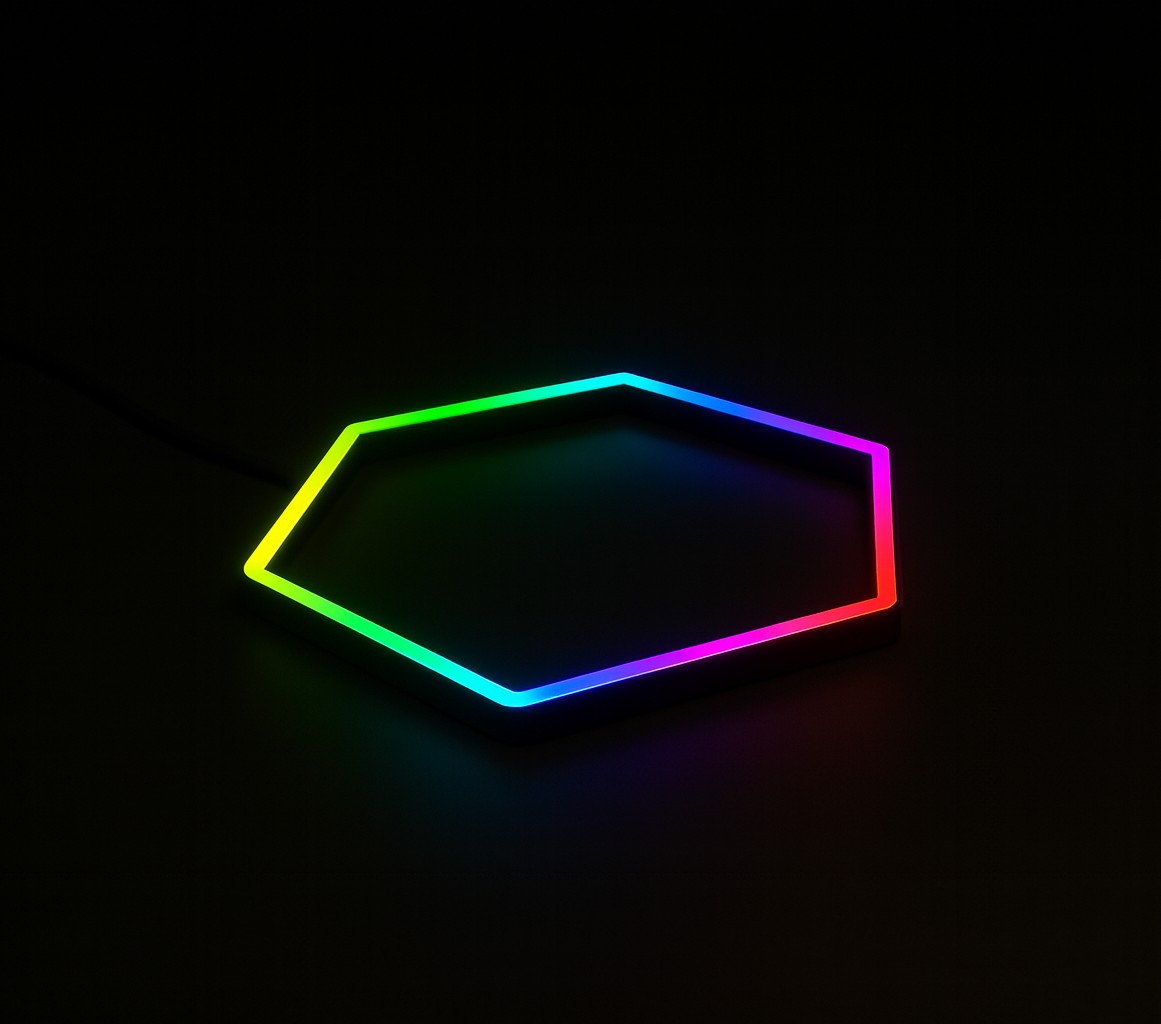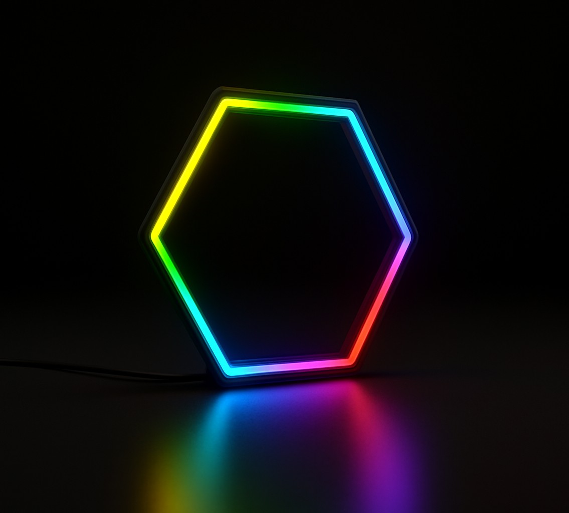 Découvrez une lampe hexagonale RGB multicolore au design futuriste, pilotable depuis un smartphone en Bluetooth