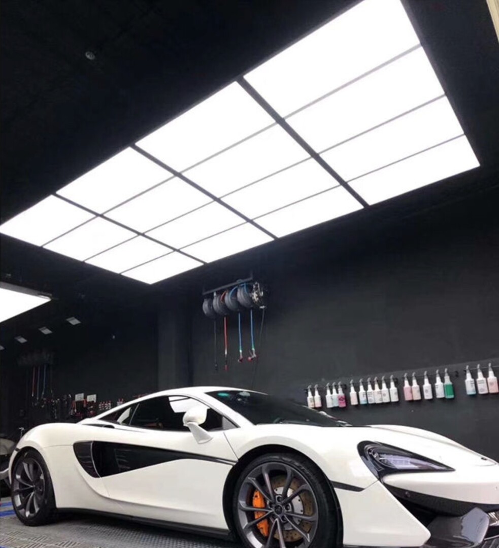 Le panneau LED géant de plafond 4,8 m x 2,4 m – 720 W – 6500 K représente ce qui se fait de mieux en éclairage professionnel pour garages et ateliers.