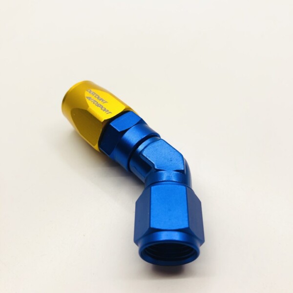 Raccord usiné CNC AN6 en aluminium anodisé Bleu et Jaune + Gravure Laser