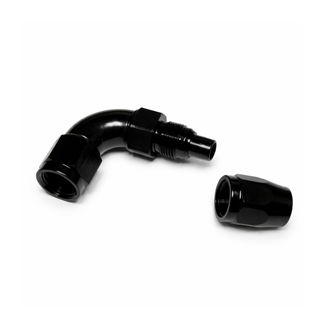 Ce raccord AN6 femelle 90° noir offre une jonction ultra fiable, étanche et facile à intégrer dans les montages serrés grâce à son angle droit et sa bague swivel orientable.
